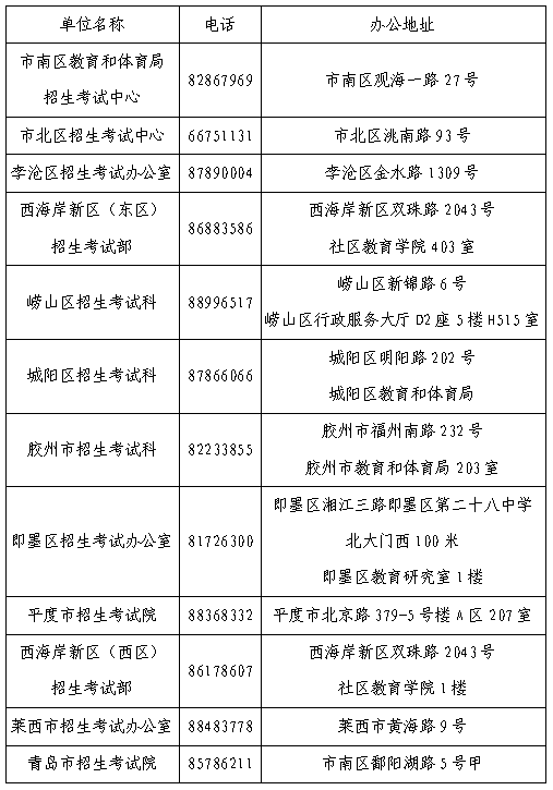 招生考试机构办公电话及地址