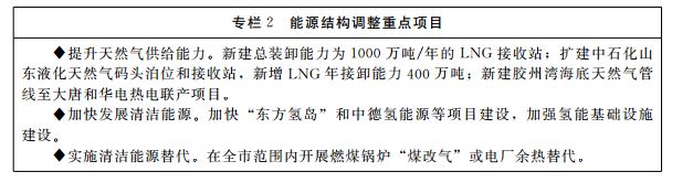 1.优化能源供给结构。积极推进能源生产和消费革命,加速能源体系清洁低碳、安全高效发展。控制化石能源总量,推动煤炭等化石能源清洁高效利用;实施可再生能源替代行动,促进非化石能源成为能源消费增量主体。大幅增加清洁能源生产供给能力,推进海上风电、光伏等可再生能源发展;开展海洋能、氢能等其他可再生能源利用的示范推广,打造“东方氢岛”;在具备条件的区域,推广开发利用地热能。完善能源产供储销体系,扩大外部天然气供应,推进LNG接收站建设,完善天然气主干管网,提升新能源消纳和存储能力。