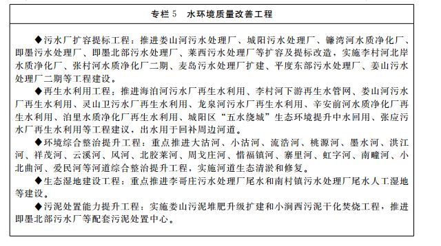 1.强化水资源、水生态、水环境统筹管理。坚持以水定城、以水定地、以水定人、以水定产,建立水资源刚性约束制度,实行水资源消耗总量和强度双控,确立水资源开发利用和用水效率控制红线,实施流域生态环境资源承载力监测预警管理。统筹建立水资源、水生态和水环境监测评价体系,对大沽河等重要河流开展水生态环境评价,增加生态用水保障,促进水生态修复。持续削减主要水污染物排放总量,探索开展总氮总磷排放总量控制,加强总氮排放治理。