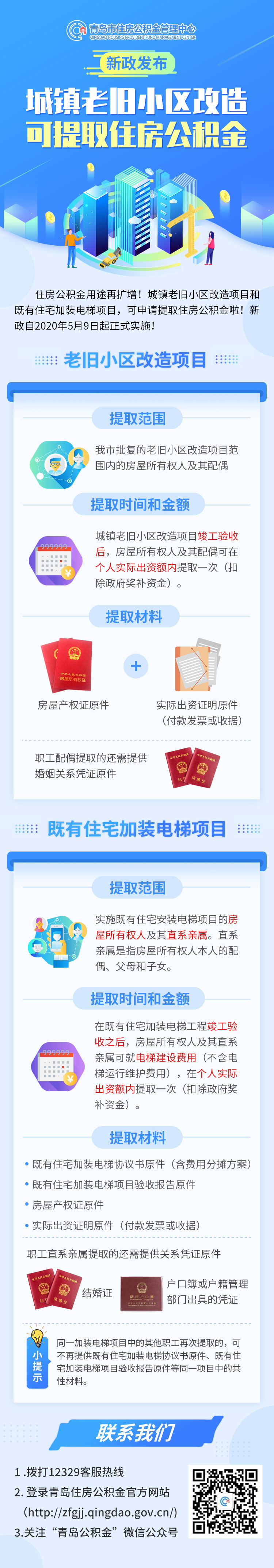 为助推我市城镇老旧小区改造工作,减轻职工经济负担,根据国家住建部下发的《城镇老旧小区改造试点方案》,以及我市印发的《关于印发365bet365_bet28365365娱乐场_365体育网页版在线登录官网市城镇老旧小区改造试点工作方案的通知》《关于进一步推进既有住宅加装电梯工作的通知》等有关政策规定,在调研借鉴部分城市做法的基础上,结合我市实际情况,市住房公积金管理中心起草了我市老旧小区改造提取住房公积金有关事项的通知,经市住房公积金管理委员会2020年第一次会议审议通过,《关于城镇老旧小区改造提取住房公积金有关事项的通知》自2020年5月9日起正式实施。