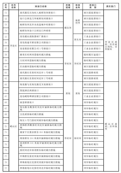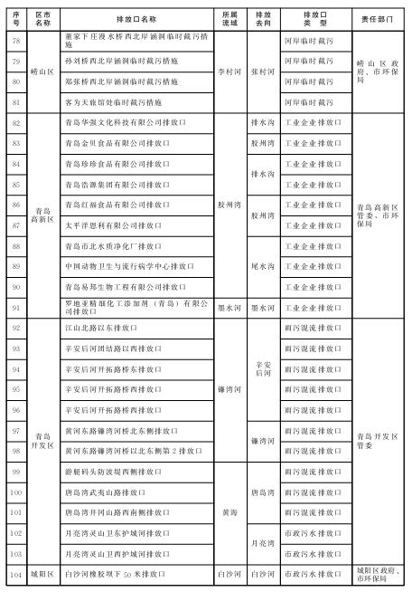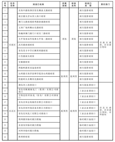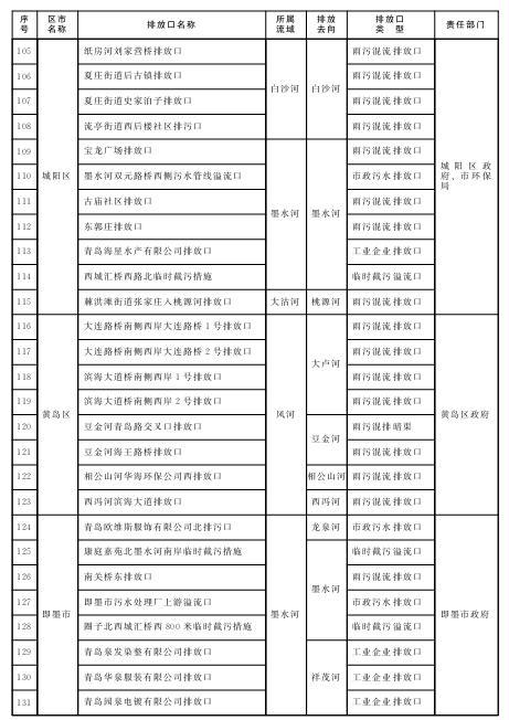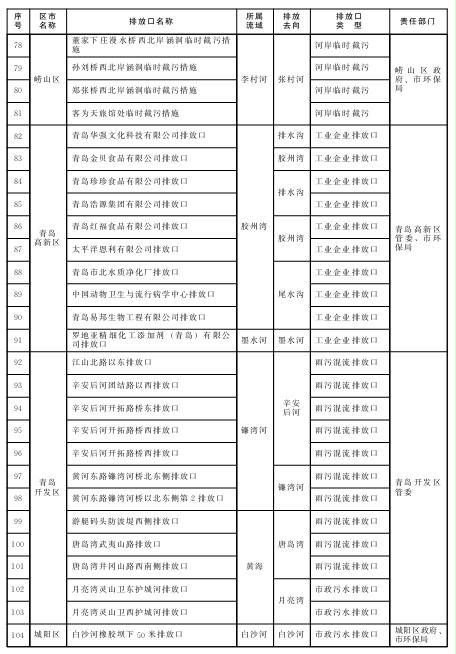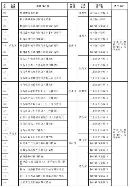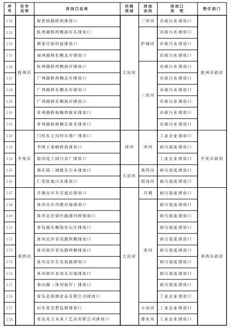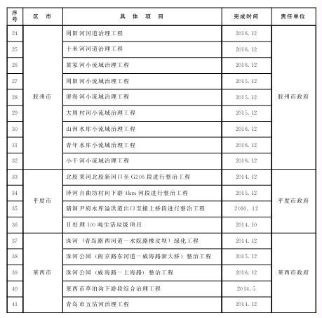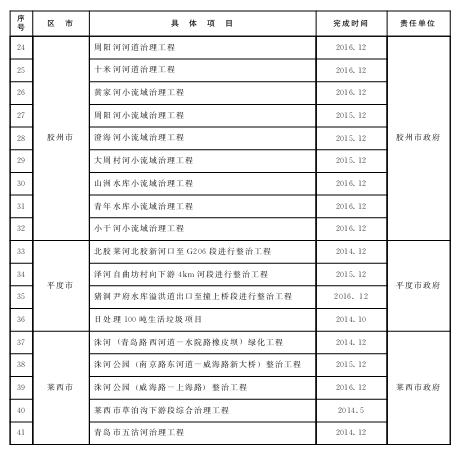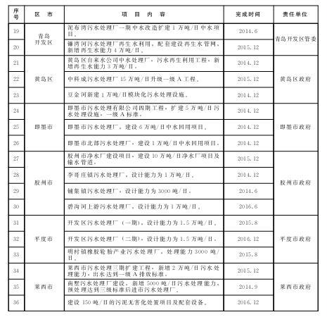 (二)目标要求。按照省委、省政府提出的解决城市(含县城)建成区污水直排环境问题的有关目标要求,以解决污水直排环境问题为重点,用3年时间全面实施全市河流污染整治工作。2014年,全面整治环胶州湾的污染河流;解决城区污水直排环境问题,消除所有污水直排口。到2016年底,全市范围内主要河流水质明显改善,鱼类可稳定生长;废水排放重点企业达标排放、100%实现远程监控;胶州湾污染隐患基本消除。