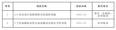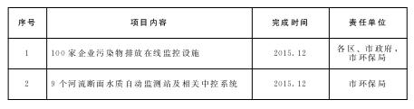 (四)实施河道清淤整治和生态修复,强化水环境监控,巩固并持续提升河流水污染防治成果。在解决污水直排问题的基础上,不断深化河道综合整治及生态修复工作,实施河道清淤,建设完善河道拦蓄水设施、中水回用设施,提升工业污染防治水平,强化河流水环境及重点污染源在线监控,促进河道水质不断改善。到2016年底,所有城区河道实现有水有鱼的水质目标,工业污染隐患基本消除。3年规划综合整治40条河道,实现中水回补河道。2016年底前,将日废水排放量300吨以上或化学需氧量排放量在30公斤以上,以及重金属污染物排放企业、废水直接排入海洋、河流的企业和环评审批有明确要求的企业,作为安装在线监测设备实施自动监控的重点企业,增加监控企业100家。在大沽河流域和其他重点流域建设9座水质自动监测站,其中在大沽河流域主要闸坝位置建设水质自动监测站7座,在墨水河和白沙河入海口各建设水质自动监测站1座。