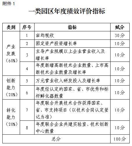 附件:1.一类园区年度绩效评价指标