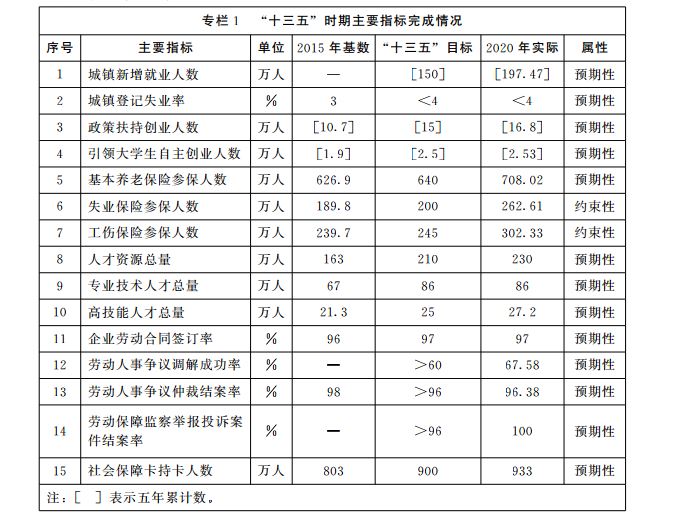 (一)“十三五”时期取得的成就。“十三五”时期,我市坚持稳中求进总基调,主动适应经济新常态,持续深化改革创新,全面完成各项目标任务。就业局势保持总体稳定,就业规模稳步扩大,就业结构更加优化,累计实现城镇新增就业197万人。持续深化社会保险制度改革,初步构建起公平、可持续的社会保障体系,社会保障覆盖面和保障能力同步增长,基本养老保险参保人数达到708万人。人才发展体制机制改革不断深化,人才队伍不断壮大,人才结构进一步优化,人才人事助力高质量发展的作用得到进一步发挥,人才资源总量达到230万人。劳动关系保持总体和谐稳定,治欠保支取得明显成效,劳动者合法权益得到有效维护。深入推进“一次办好”改革,系统行风持续改善,人力资源社会保障扶贫成果显着,为民服务水平不断提升。“十三五”时期,全市人力资源社会保障事业持续快速发展,为建设开放、现代、活力、时尚的国际大都市做出了积极贡献,为“十四五”时期事业发展奠定坚实基础。