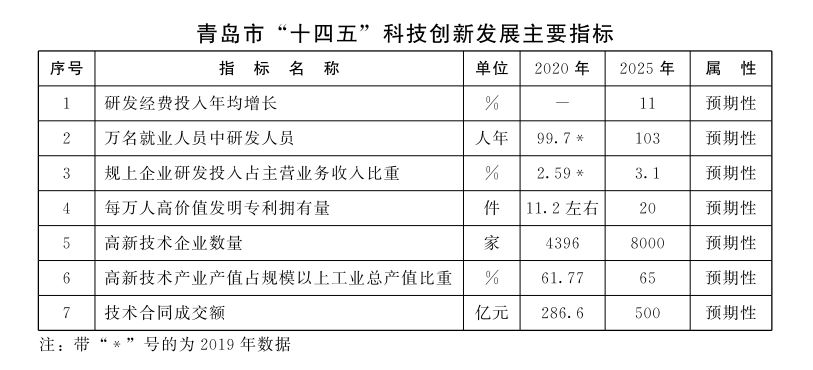 到2025年,战略科技力量更加强化,企业技术创新能力显着提升,人才创新活力有效释放,科技创新体制机制不断健全,创新创业生态持续优化,重点领域科技创新和产业化应用取得明显突破,打造成为国际化创新型城市标杆。每万人高价值发明专利拥有量达20件,高新技术企业达8000家,高新技术产业产值占规模以上工业产值比重达65%。