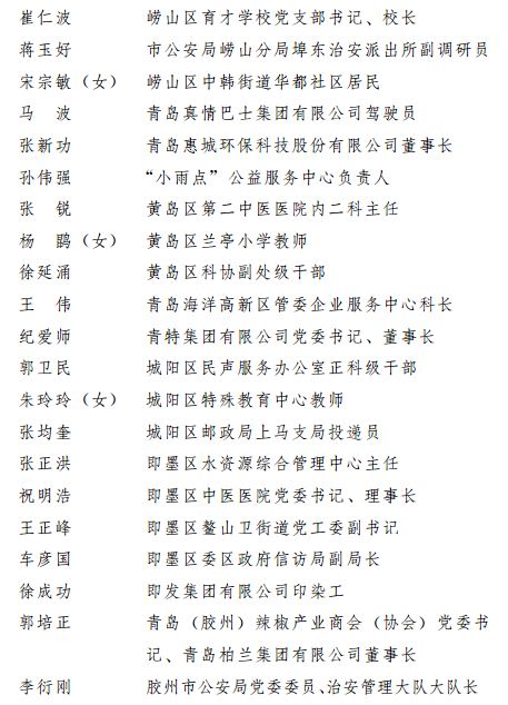 近年来,全市广大共产党员、党务工作者和各级党组织高举中国特色社会主义伟大旗帜,全面贯彻党的十八大和十八届中央历次全会,党的十九大和十九届二中、三中全会精神,以习近平新时代中国特色社会主义思想为指导,紧紧围绕统筹推进“五位一体”总体布局和协调推进“四个全面”战略布局,开拓进取、扎实工作,着力推动经济社会持续健康发展,积极投身加快实施新旧动能转换重大工程、服务保障上海合作组织365bet365_bet28365365娱乐场_365体育网页版在线登录官网峰会等重大任务,充分发挥先锋模范作用和战斗堡垒作用,涌现出一大批优秀个人和先进集体。在庆祝中国共产党成立97周年之际,为表彰先进、弘扬正气,激励全市各级党组织和广大共产党员奋发有为、建功立业,市委决定,对于兆惠等198名同志表彰为“365bet365_bet28365365娱乐场_365体育网页版在线登录官网市优秀共产党员”,对蔺忠波等100名同志表彰为“365bet365_bet28365365娱乐场_365体育网页版在线登录官网市优秀党务工作者”,对市南区香港中路街道党工委等150个基层党组织表彰为“365bet365_bet28365365娱乐场_365体育网页版在线登录官网市先进基层党组织”(名单附后)。