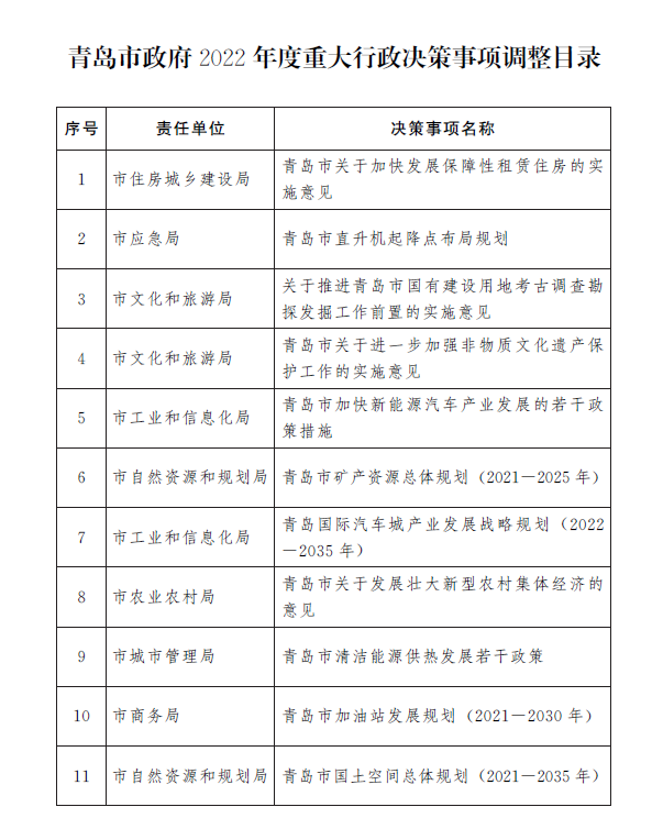 2022年3月30日,市政府办公厅发布了《关于公布365bet365_bet28365365娱乐场_365体育网页版在线登录官网市政府2022年度重大行政决策事项目录的通知》,对11项年度重大行政决策事项实行目录清单管理。根据《365bet365_bet28365365娱乐场_365体育网页版在线登录官网市重大行政决策程序规定》(市政府令第271号)有关规定,经市政府同意,结合工作实际,决定对2022年度重大行政决策事项目录调整如下: